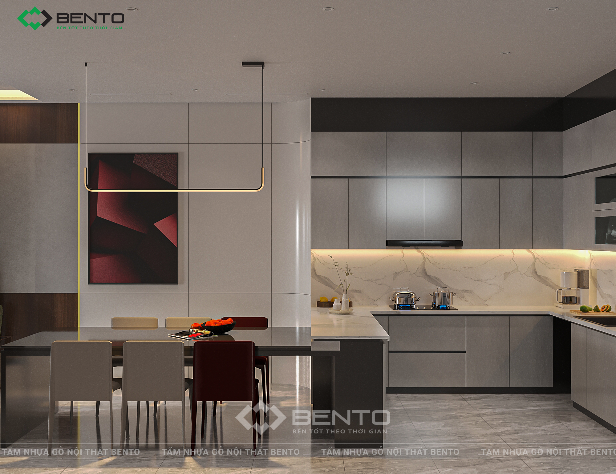 Điểm mạnh của BENTO nằm ở tính đồng nhất. Với các công trình yêu cầu thi công đồng bộ nhiều hạng mục nội thất, sự ổn định này giúp đảm bảo độ khớp giữa các module tủ, đặc biệt trong thiết kế tủ bếp chữ L, chữ U hoặc hệ tủ cao kịch trần.