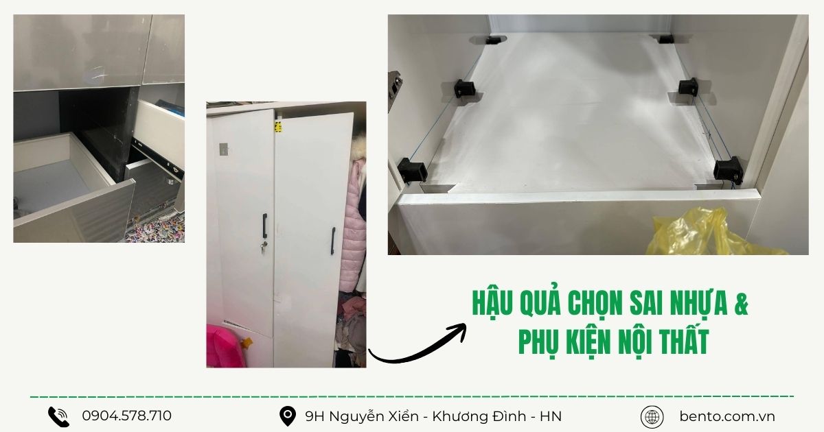 Thực tế, nhiều trường hợp tủ xuống cấp nhanh không phải vì bản thân chất liệu nhựa, mà do chọn sai loại tấm, thi công ẩu hoặc sử dụng chưa đúng cách. Hệ quả là chỉ sau vài năm đã phải chỉnh sửa, thay bản lề, thậm chí làm lại toàn bộ. Khoản chi phí phát sinh này đôi khi còn cao hơn tiền mua ban đầu.